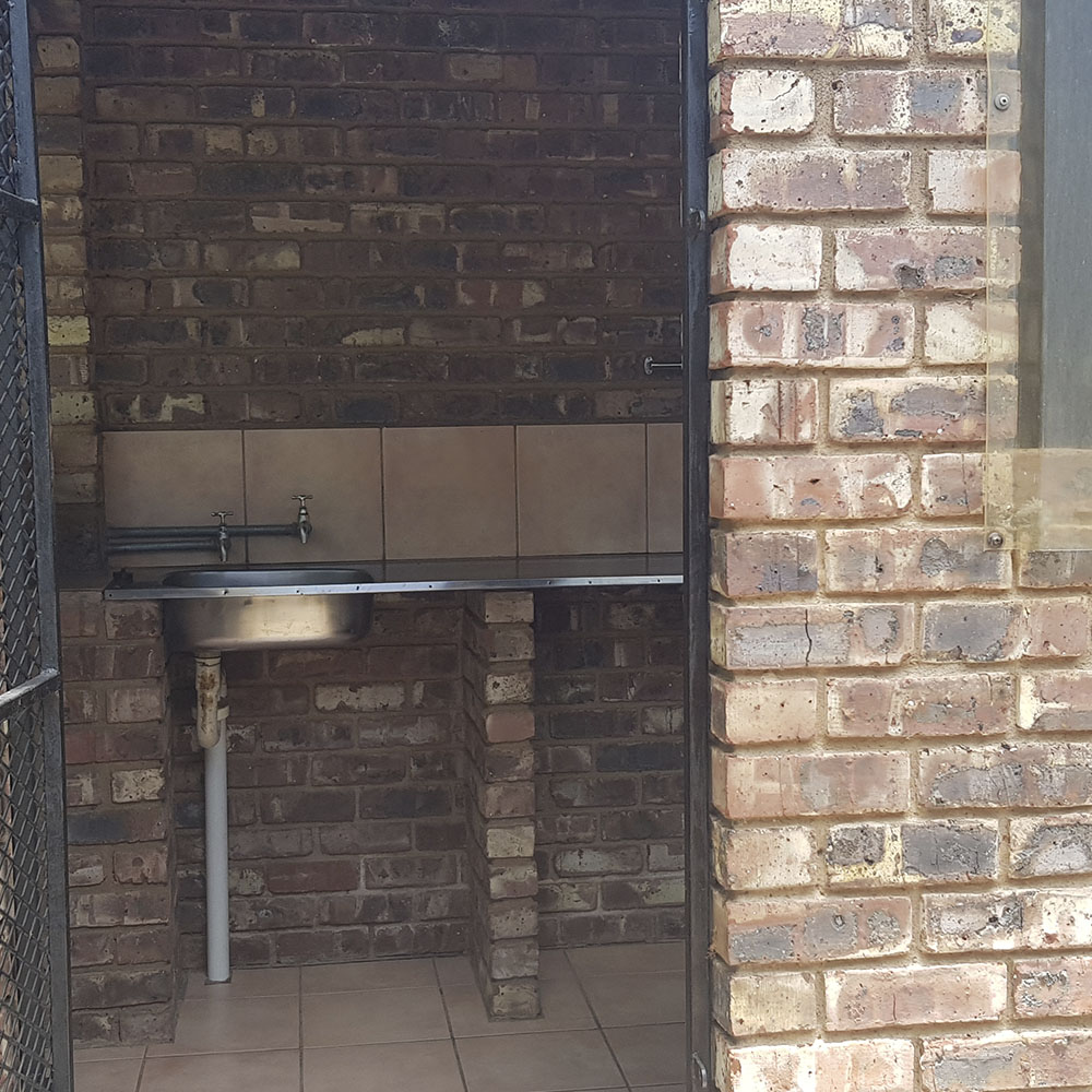 Kombuis toegerus met gasstoof, gasyskas, eetgerei, glase, potte, panne ens. Gas, kerse, beddegoed word verskaf. ‘n Plaspoel en lapa met braaigeriewe is ook beskikbaar. Sonkrag ligte maar geen kragpunte. Beperkte hoeveelheid vuurmaakhout beskikbaar.